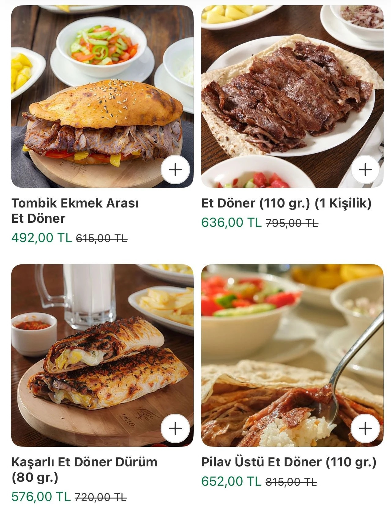 Sosyal medyada yayılan bir paylaşım, 80 gramlık et dönerin 615 TL’ye satıldığını gösterince gündem oldu. Bir kullanıcı paylaşımında, “Bakın tekrar söylüyorum, 80 gram et dönerin fiyatı 615 TL olamaz. 1 kilo etin fiyatı en kalitelisi bile olsa 650-700 TL bandındayken bu fiyat nasıl mümkün olabilir? Bu haksız ve haram bir kazançtır. Hiçbir resmiyeti olmadan 'serbest piyasa' bahanesiyle kafalarına göre fiyat belirliyorlar ve herkesi söğüşlüyorlar” ifadeleri yer aldı.