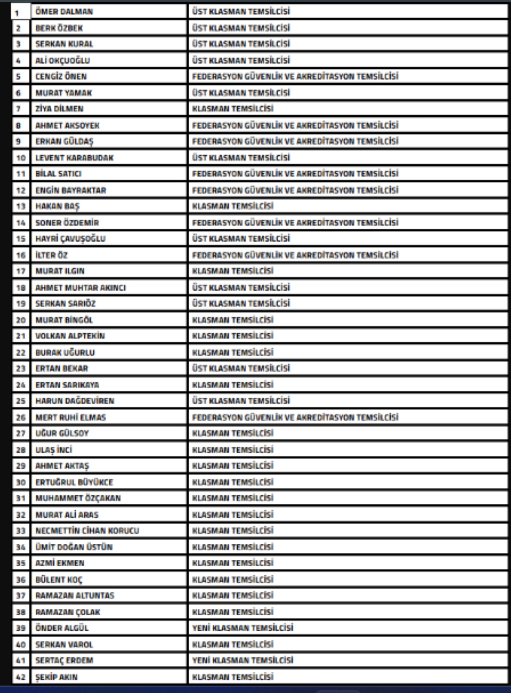 "Türkiye Futbol Federasyonu'nca yürütülen bahis soruşturması kapsamında futbol dalında bahis oynadığı tespit edilen ve aşağıda isimleri yer alan 42 Temsilcinin Futbol Disiplin Talimatı'nın 57. maddesi uyarınca 26.12.2025 tarihinden itibaren tedbirli olarak PFDK'ya sevk edilmesine karar verilmiştir.