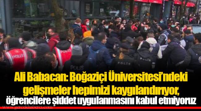 Babacan, “Öğrenciler haklı bir şekilde, Anayasa'nın kendilerine verdiği hak çerçevesinde protestolar yaptı. Demokratik bir toplumda herkes şiddet içermedikçe toplantı ve gösteri yürüyüşü düzenleyebilir. Dün 159 gencecik arkadaşımız gözaltına alındı. Öğrencilere şiddet uygulandı. Yazıktır, günahtır. Burası Türkiye’nin en güzide üniversitelerinden birisi. Hiçbir kurumda öğrencilere karşı böyle bir uygulama kabul edilemez. Oradaki öğrenciler tamamen anayasal haklarını kullanarak, ‘rektörümüzü kendimiz seçmek istiyoruz’ diyorlar. Boğaziçililerin bunun ötesinde bir talebi yok." ifadesini kullandı.