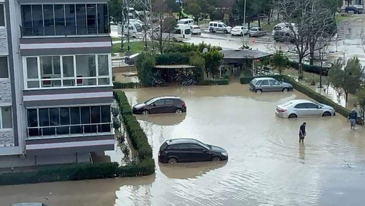 İzmir'de dün gece başlayan kuvvetli sağanak yağış Aliağa ilçesinde su baskınlarına yol açtı. Derenin taşması üzerine Siteler Mahallesi göle dönerken, birçok araç suya gömüldü.