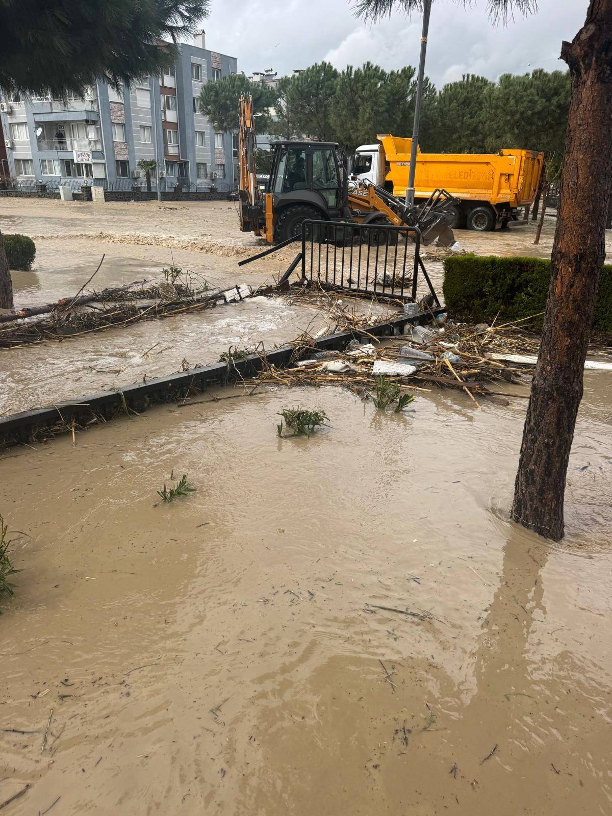 İzmir Büyükşehir Belediyesi Afet İşleri Dairesi Başkanlığı Afet Koordinasyon Merkezi (AKOM) Şube Müdürlüğü koordinesinde yürütülen çalışmalar kapsamında, 412 iş makinesi, 200 pompa ve bin 365 personel sahada görev yapıyor. İZSU Genel Müdürlüğü ekipleri özellikle yol ve konutlardaki su baskınlarına müdahale ederken, itfaiye ekipleri su tahliye çalışmalarını sürdürüyor.