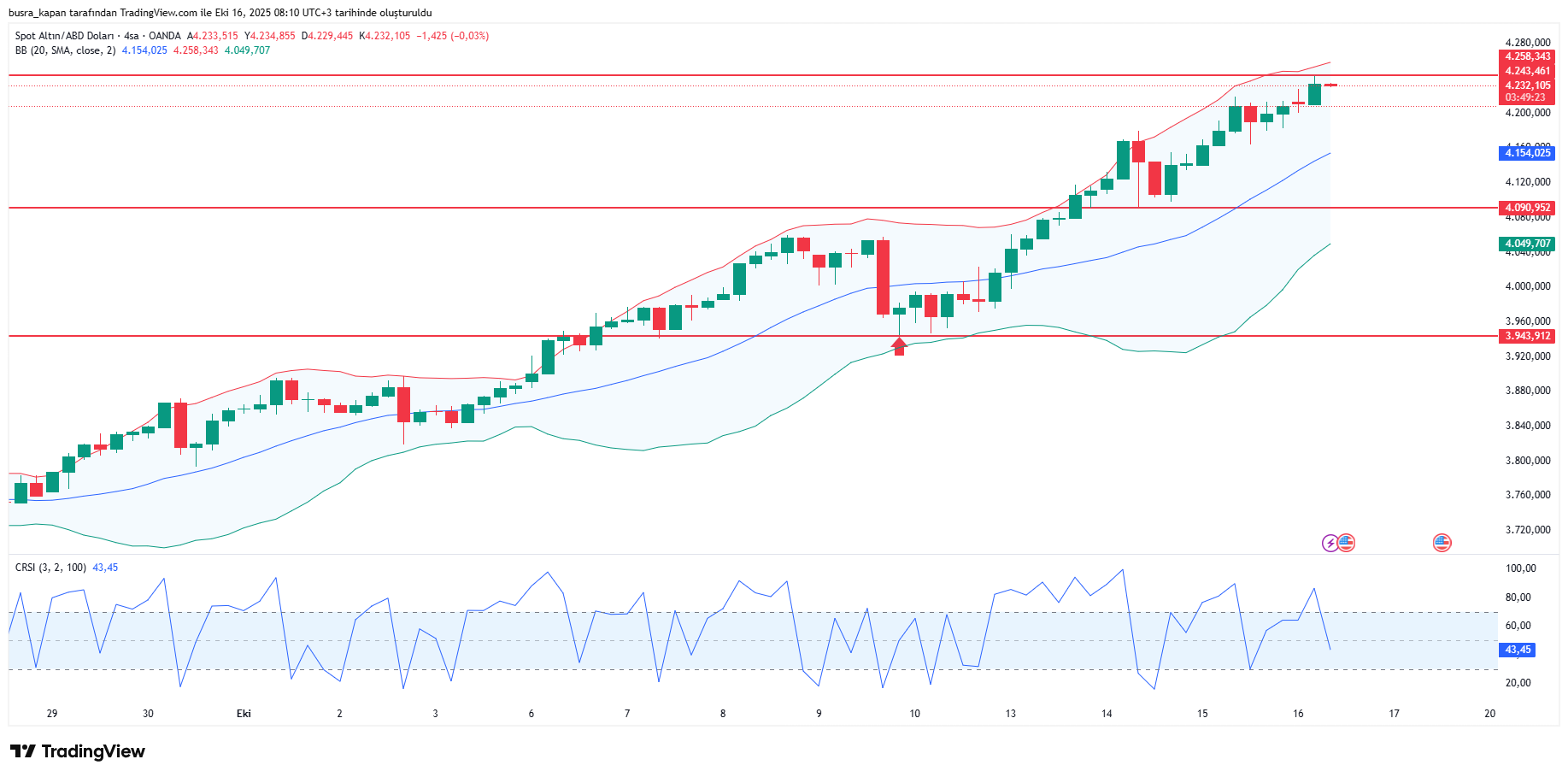 Yaşanan gelişmelerin etkisiyle ons altın 4 bin 243 dolar seviyesine yükselerek tüm zamanların rekorunu kırdı. Sabah 08.14'de 4 bin 228 dolardan satılıyor.