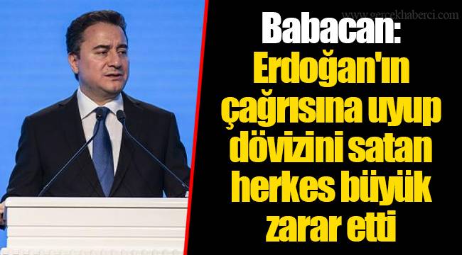 Babacan, "Cumhurbaşkanı son 3-4 yılda defalarca 'döviz alanın eli yanar, dövizinizi satın' diye çağrı yaptı. Cumhurbaşkanı'nın çağrısına uyup dövizini satan herkes büyük zarar etti. Bir Cumhurbaşkanı'nın vatandaşa böyle bir çağrı yapması büyük hatadır" dedi.