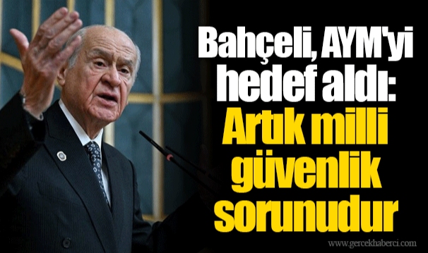 Burada yaptığı açıklamada Anayasa Mahkemesi'ni (AYM) hedef alan Bahçeli, "Anayasa Mahkemesi, artık milli güvenlik sorunudur. Böyle gidemez. Böyle bir mahkeme yapısı Türkiye'de yüksek yargı organları içinde yer alamaz" ifadelerini kullandı.