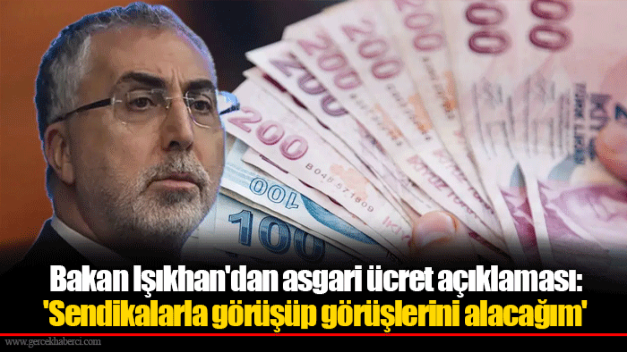 Çalışma ve Sosyal Güvenlik Bakanı Vedat Işıkhan, 2026'da geçerli olacak asgari ücretle ilgili, "Biz sosyal diyalog gereği her türlü süreci işleteceğiz. Ben sendikalarla görüşüp, görüşlerini alacağım, benim görevim bu, mutlaka istişarede bulunacağız." dedi.