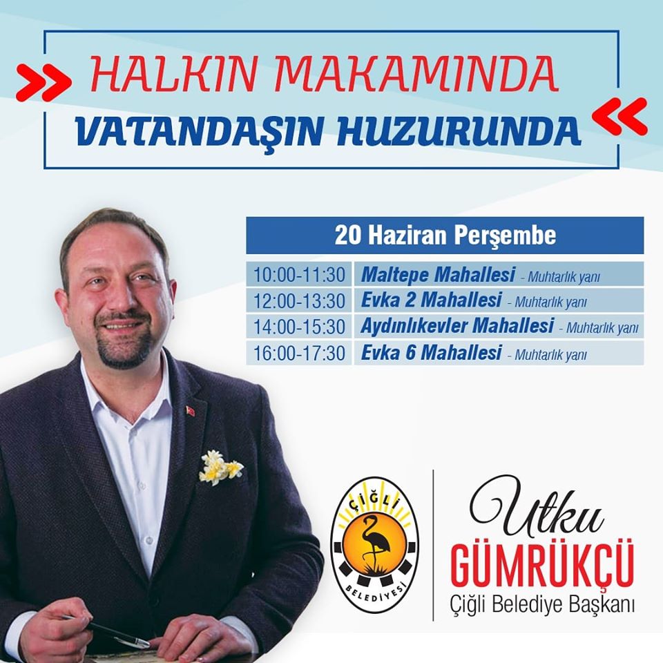 Başkan Gümrükçü, yarından itibaren Maltepe, Evka 2, Aydınlıkevler ve Evka 6 mahalleleri'ne giderek muhtarlık binalarının hemen yanına makamını taşıyacak; müdürleri ile birlikte yaklaşık 1,5 saat boyunca vatandaşları dinleyecek. Bu örnek uygulama ise Çiğli Belediyesi'nin sosyal medya hesaplarından duyuruldu.