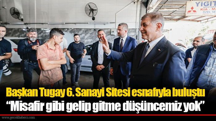 Toplantıda esnafın taleplerini dinleyen Başkan Tugay, kaçak moloz dökümü, çevre kirliliği gibi sorunlara karşı ortak mücadele çağrısı yaptı. İlçe belediyeleriyle koordineli bir şekilde sorunların çözümü için çalışmaların devam edeceğini ifade eden Başkan Tugay, 6. Sanayi Sitesi’nde köklü bir iyileştirme yapılması için adım atacaklarını söyleyerek, “Burasının fazla sorunu olduğunu görüyoruz, biliyoruz. Büyükşehir ve ilçe belediyeleri olarak bir şeyler yapmaya çalışıyoruz. Yapılması gerekenler sizlerle görüş alışverişi ile planlanacak. Burada gerçekten köklü bir düzenleme olsun isteriz. Yolu, kaldırımı, altyapısı, üstyapısı... Buradaki işçilerimizin de sosyal olarak desteklenmesi lazım. Bu sadece para ve ihtiyaçlarla ilgili değil. İnsanca bir yaşam için spor alanı, park gibi sosyal ihtiyaçlar var” dedi.