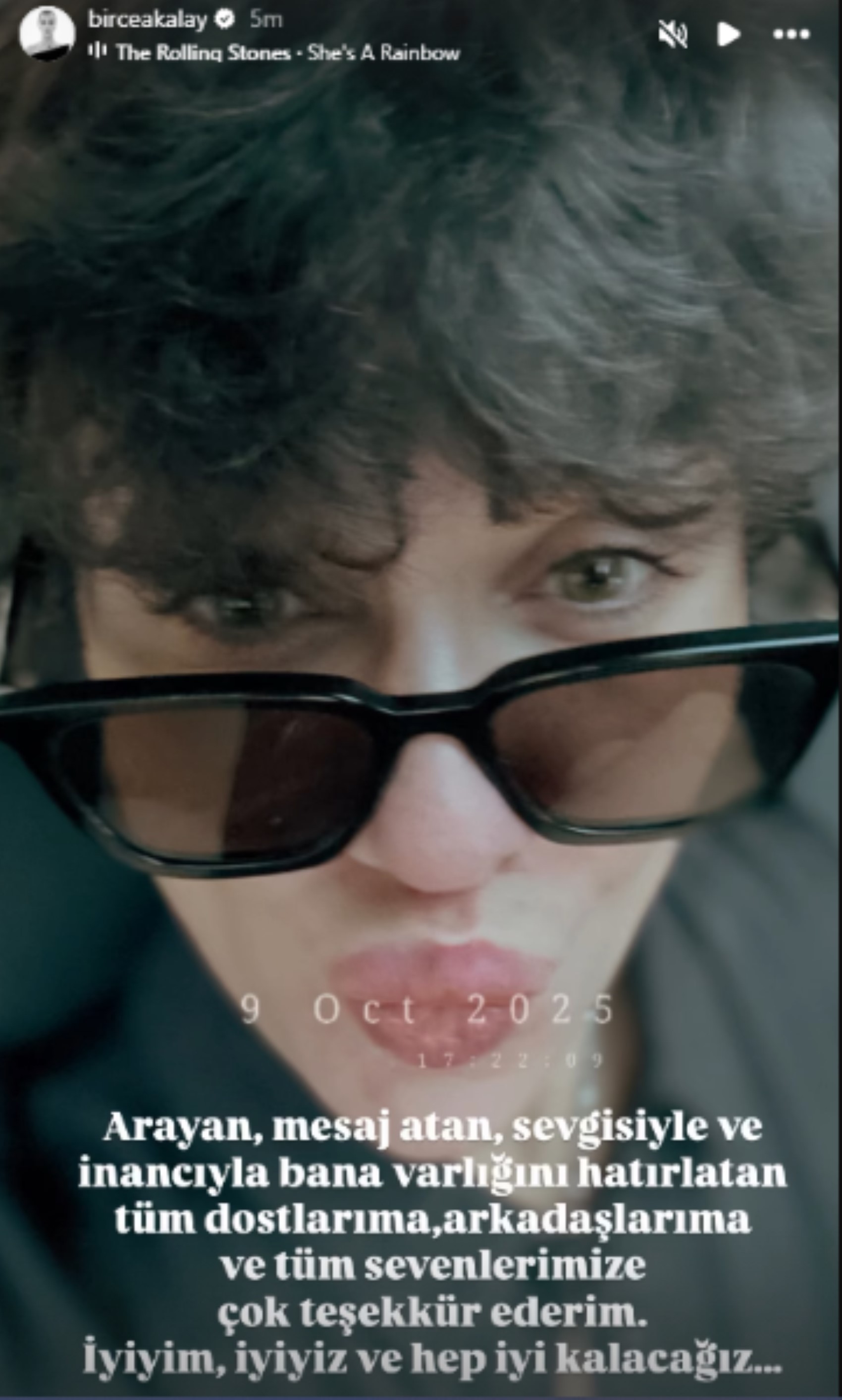 "Arayan, mesaj atan, sevgisiyle ve inancıyla bana varlığını hatırlatan tüm dostlarıma, arkadaşlarıma ve tüm sevenlerimize çok teşekkür ederim. İyiyim, iyiyiz ve hep iyi kalacağız..."
