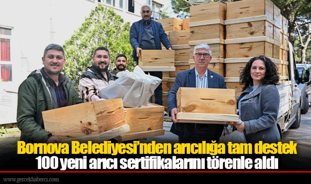 Bornova Belediyesi’nin bu yıl 9.’sunu düzenlediği Arıcılık Kursu ile çoğunluğu gençler ve kadınlardan oluşan 100 yeni arıcı yetiştirildi. Katılımcılara teorik ve pratik eğitimlerin yanı sıra tam donanımlı arıcılık ekipmanları ve bir arılı kovan hediye edildi. Arılarını koyacak yeri olmayanlar için Kayadibi Mahallesi’nde 30 dönümlük arılık oluşturulurken, danışmanlık ve lavanta fidanı gibi destekler de sunuldu. Başkan Ömer Eşki, “Üreten ve doğaya saygılı bir Bornova’yı birlikte inşa ediyoruz” dedi.