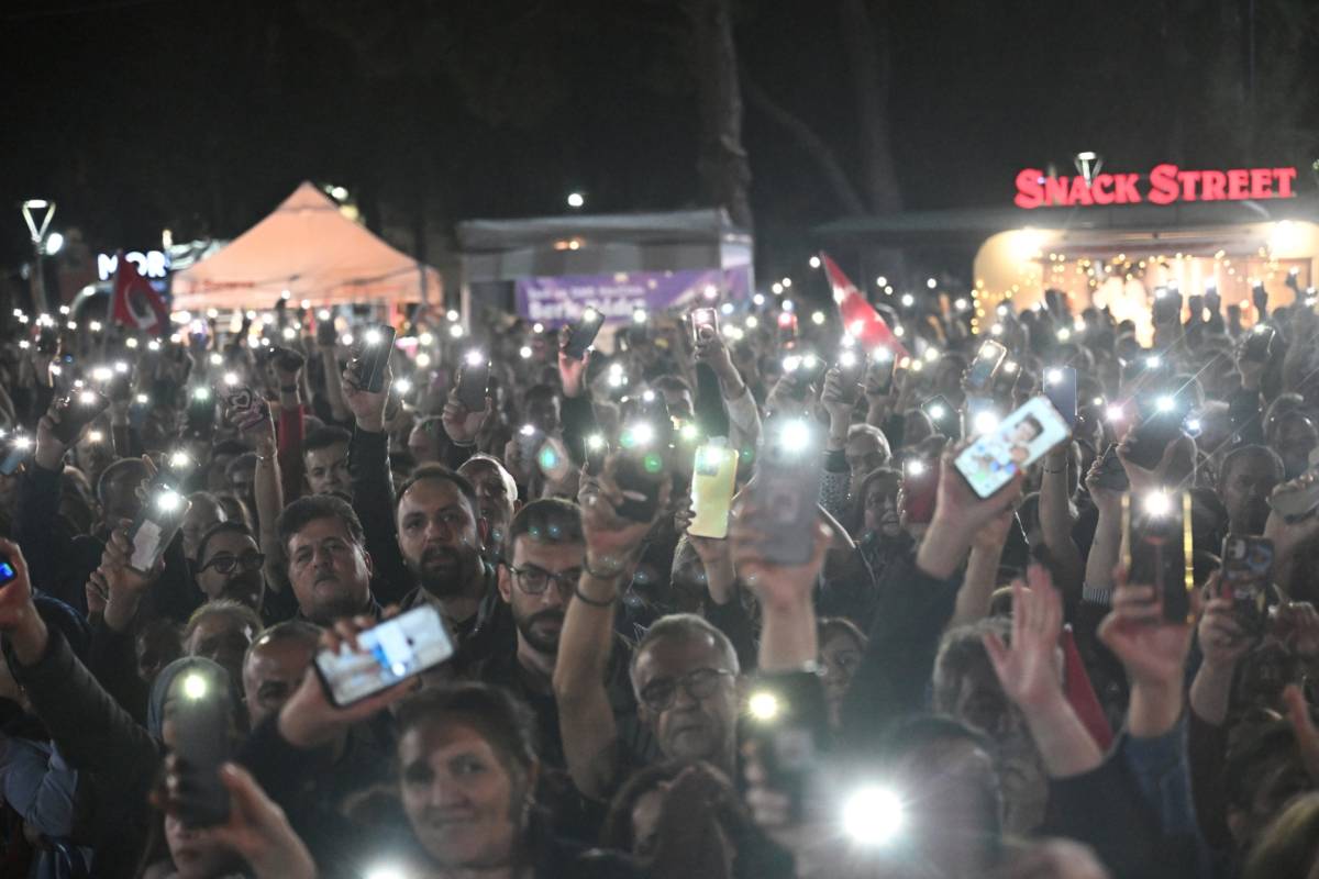 Büyükpark Meydanı’nı dolduran binlerce Bornovalının coşkulu tezahüratları arasında sahneye çıkan Türk Halk Müziği Sanatçısı Sevcan Orhan, sevilen türkülerini hep bir ağızdan söyledi. Sanatçı, yaptığı konuşmayla büyük alkış aldı:
