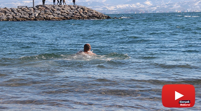 Kocaeli’nin Darıca ilçesinde bir vatandaş, kışın ortasında montla geldiği sahilde denize girdi, kumsalda güneşlendi.