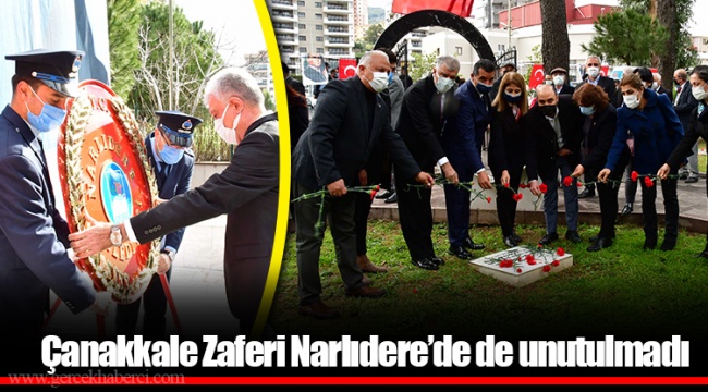18 Mart Çanakkale Zaferi’nin 106. yıldönümü dolayısıyla Narlıdere’de düzenlenen tören, Atatürk ve Şehitler Anıtı’na çelenk sunulması ile başladı. Saygı Duruşu ve İstiklal Marşı’nın ardından şehit mezarlarına karanfil bırakıldı. Narlıdere Müftüsü Kemal Karadeniz tarafından şehitler için dua edildi. Törene; Narlıdere Kaymakamı Suat Dervişoğlu, İstihkam Yüzbaşı İbrahim Sarıgöz, Belediye Başkanı Ali Engin, şehit aileleri ve gaziler, siyasi partilerin temsilcileri ve sivil toplum kuruluşlarının yöneticileri katıldı.