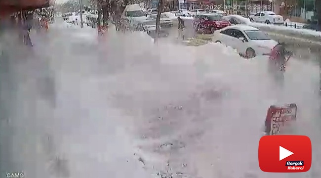 Çatıdan düşen buz kütlesinden son anda kurtuldu