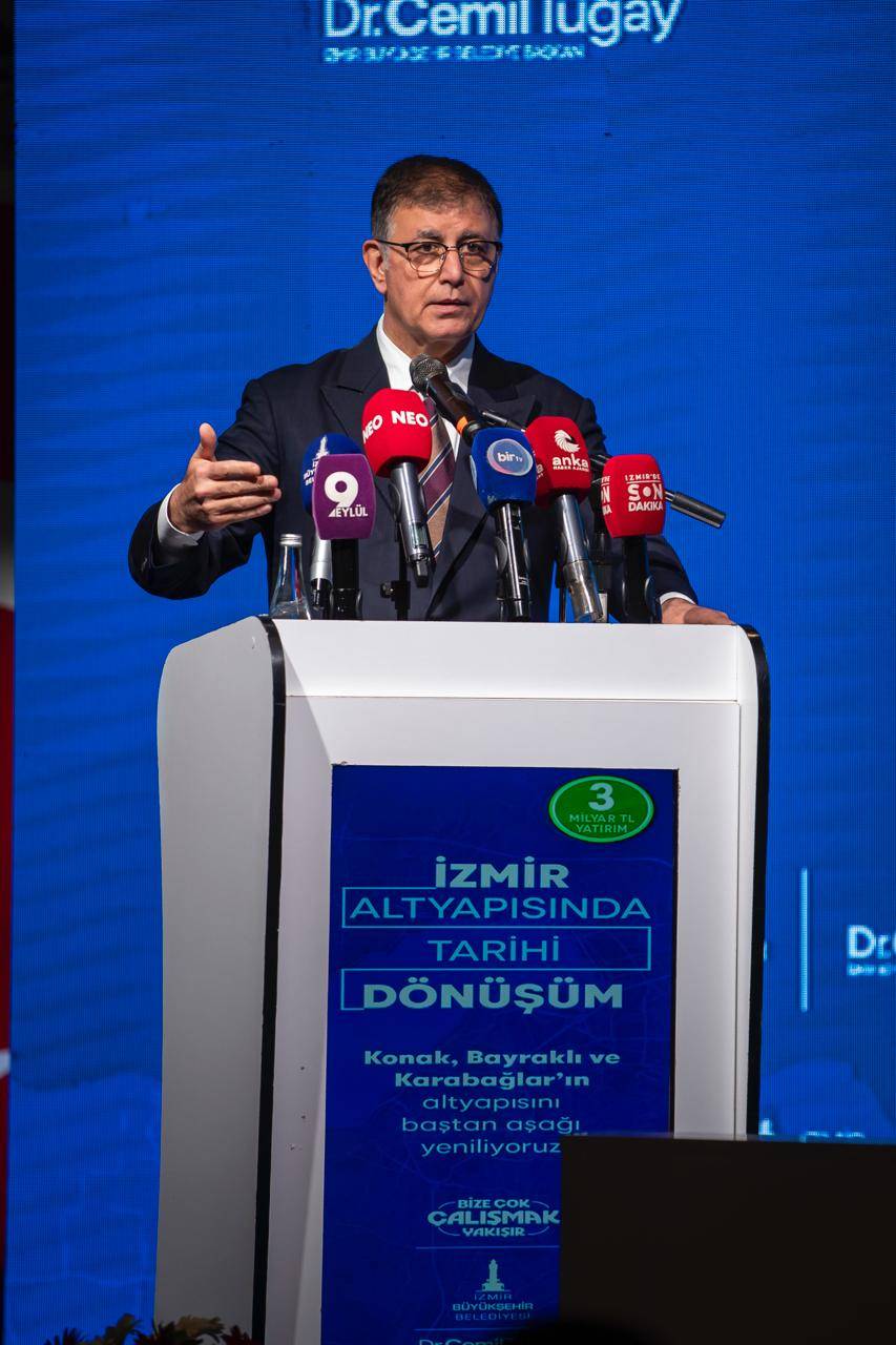 Konak Belediye Başkanı Nilüfer Çınarlı Mutlu ise törende gerçekleştirdiği konuşmasında şunları kaydetti: “Biz çok heyecanlıyız Konak halkı olarak. Bugün yapılan bu çalışma çok önemli. Biliyorsunuz altyapı yatırımı her zaman zordur sıkıntılıdır. Aslında meşakkatli bir süreçtir. Bu süreci göze alıkları için en başta sevgili İzmir Büyükşehir Belediye Başkanı Cemil Tugay’a çok teşekkür ediyorum. Bu çalışmanın uluslararası fonla yapılmasının ayrıca bir değeri var. Bu gösteriyor ki İzmir Büyükşehir Belediyesi uluslararası standartlarda iş yapabilen bir belediye. Bunlar çok değerli çalışmalar Yağmur suyu ve kanalizasyonun ayrıştırılması özellikle Konak’ın yüksek yapı bölgesinde başta olmak üzere en çok sıkıntı yaşadığımız alanları içe alıyor. Bu çalışma tamamlandığında yapışlarla oluşan su baskınları ortadan kalkacak, su yağmur birikintileri ortadan kalkacak. Ben bu çalışmalarda emeği geçen herkese çok teşekkür ediyorum. Çok daha dirençli bir İzmir önümüzdeki günlerde hayata geçecek. Bu çalışma için herkesi Büyükşehir belediyesi ve ekiplerinin yanında yer almaya davet ediyorum. Bittiğinde her şey çok daha güzel olacak.”