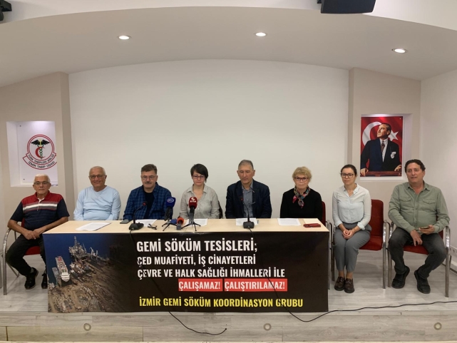 İzmir’in Aliağa ilçesinde çevre ve işçi sağlığı konularında skandallarla gündeme gelen Gemi Söküm Tesisleri’ne ilişkin Türk Mimar ve Mühendis Odaları Birliği (TMMOB) Çevre Mühendisleri Odası İzmir Şubesi, İzmir Tabip Odası ve Gemi Söküm Platformu ortak bir basın açıklaması gerçekleştirdi.