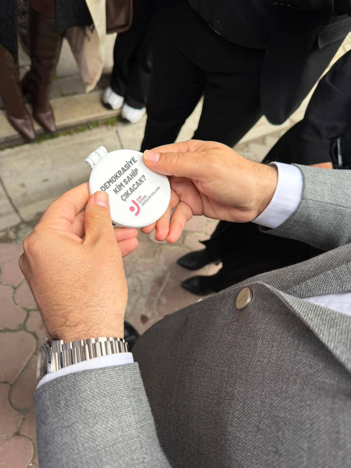 Dağıtılan aynaların dış kapağında “Demokrasiye kim sahip çıkacak?” sorusu yer alırken, kapağı açan vatandaşlar aynada kendi yansımalarıyla karşılaştı. Bu sembolik hediye ile demokrasinin korunmasının bireylerin sorumluluğunda olduğu mesajı verildi. Etkinlik, özellikle gençler ve yoldan geçen vatandaşlar tarafından ilgiyle karşılandı.