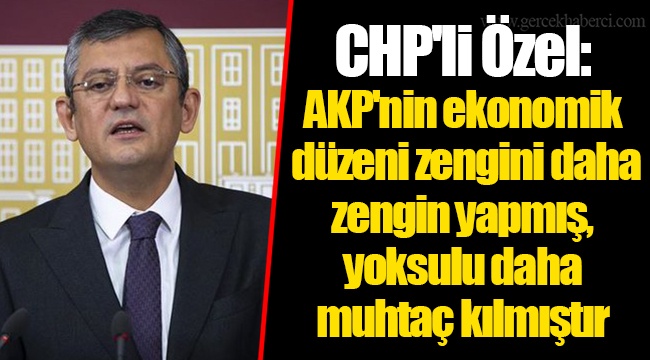 CHP Grup Başkanvekili Özgür Özel,"AKP'nin ekonomik düzeni zengini daha zengin yapmış, yoksulu daha muhtaç kılmıştır." ifadesini kullandı.