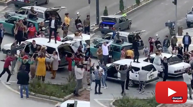 Antalya'nın Manavgat ilçesinde onlarca araçtan oluşan düğün konvoyu, ilçenin adeta altını üstüne getirdi. Seyir halindeki otomobillerin tavan ve kaputuna oturup, kavşaklarda kontak kapatarak dakikalarca oynayan davetliler, kendilerini uyaran sürücülerin üzerine yürüyüp saldırmaya kalktılar. Konvoya katılan araçları belirleyen polis, tamamına para cezası uyguladı.
