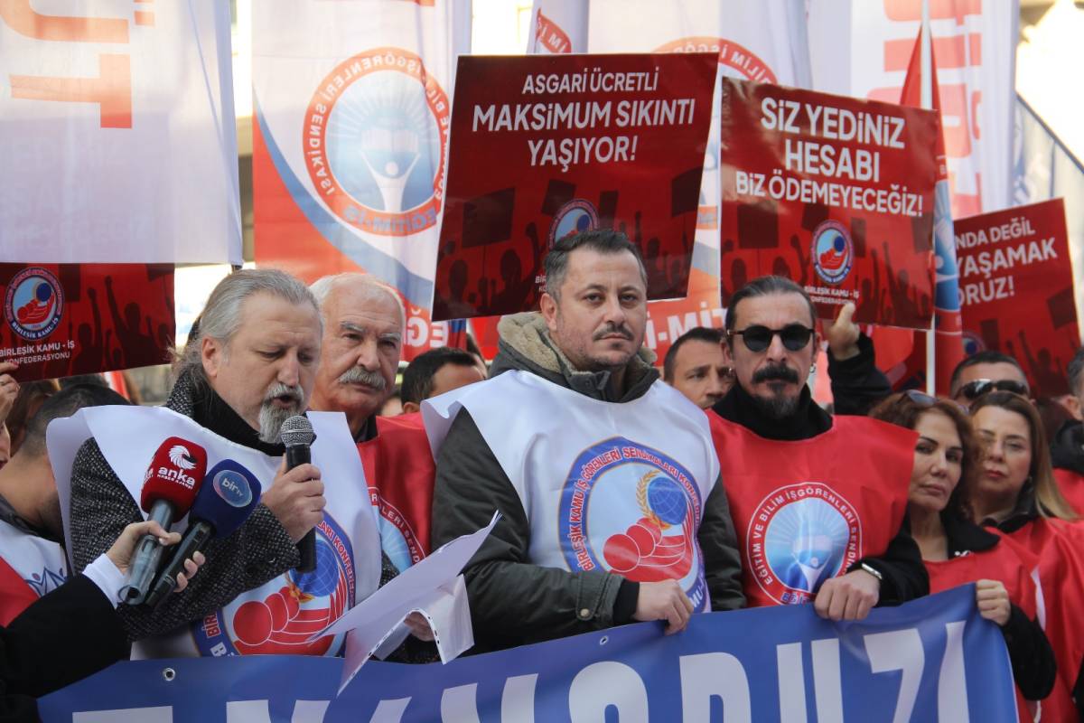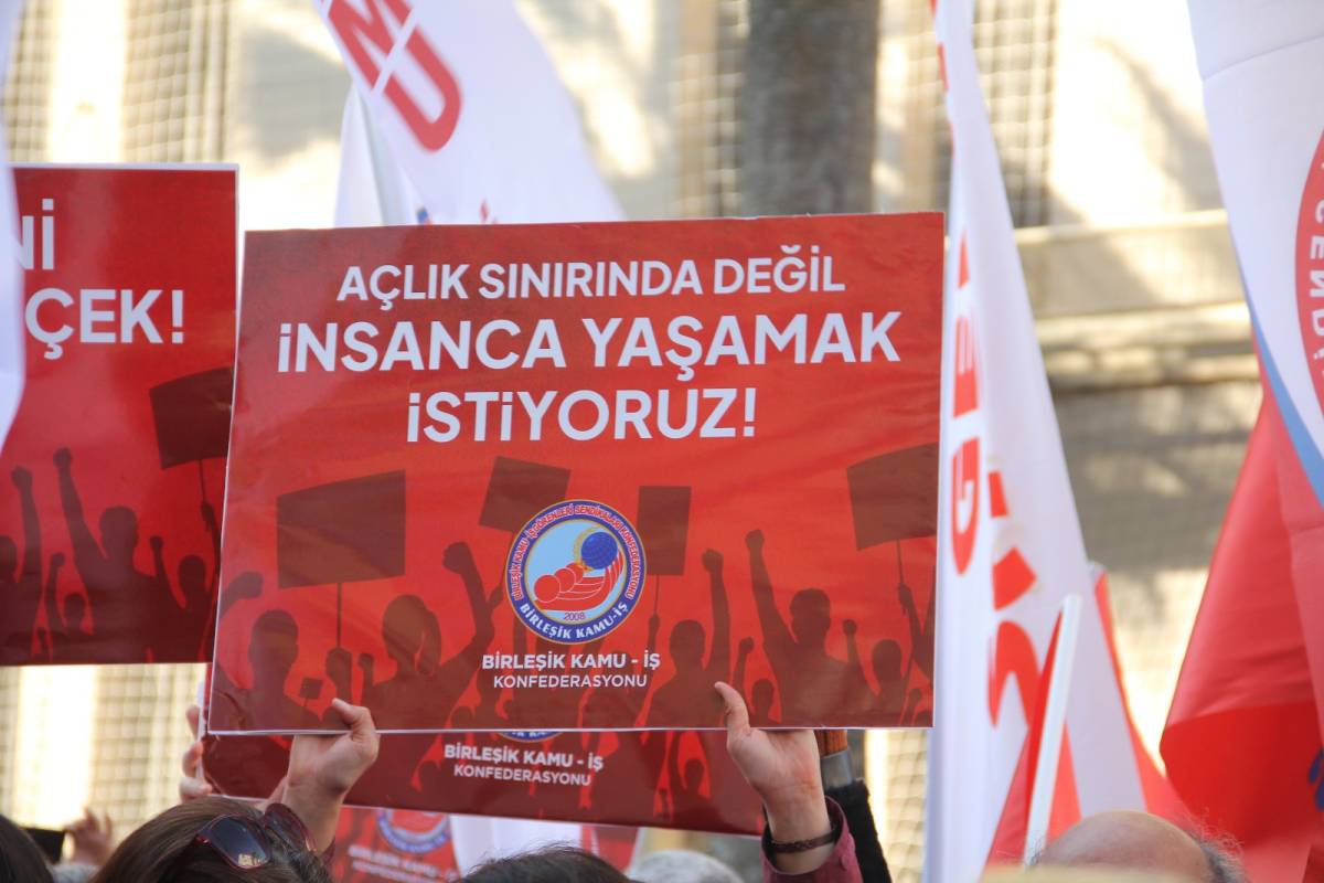 Yoksulluk sınırının üstünde maaş istiyoruz! Sadece ayrıcalıklı bir zümre için zikredilip sonra geri çekilen seyyanen zammın emekçi ve emeklilerin tamamına verilmesini istiyoruz! Yan ödemelerin tamamının emekli aylıklarına yansıtılmasını istiyoruz. Gelir vergisinin yüzde 15’e sabitlenmesini istiyoruz. Enflasyon farkının aylık olarak ödenmesini istiyoruz! Yılda 4 ikramiye istiyoruz! Kira yardımı istiyoruz! Kamu emekçisinin umudu olan Birleşik Kamu-İş olarak altını çiziyoruz: Bu iş bırakma eylemimiz bir uyarıdır. Kamu emekçisi, gasp edilen hakları teslim edilmedikçe üretimden gelen gücünü kullanmayı da demokratik hakları çerçevesinde mücadele etmeyi de sürdürecektir. Nasıl belirlendiği belli olmayan gerçek dışı enflasyon rakamlarını, ekonomik krizin faturasının önümüze koyulmasını, milli gelirden almamız gereken payın gasp edilmesini kabul etmiyoruz! Haklıyız, direneceğiz, kazanacağız!