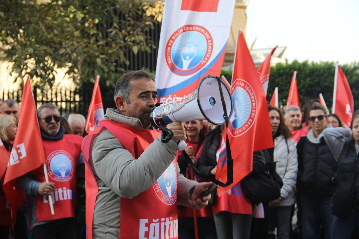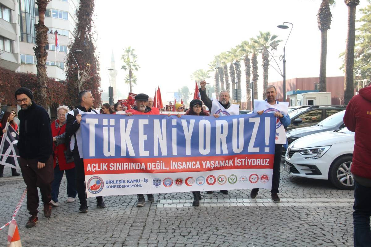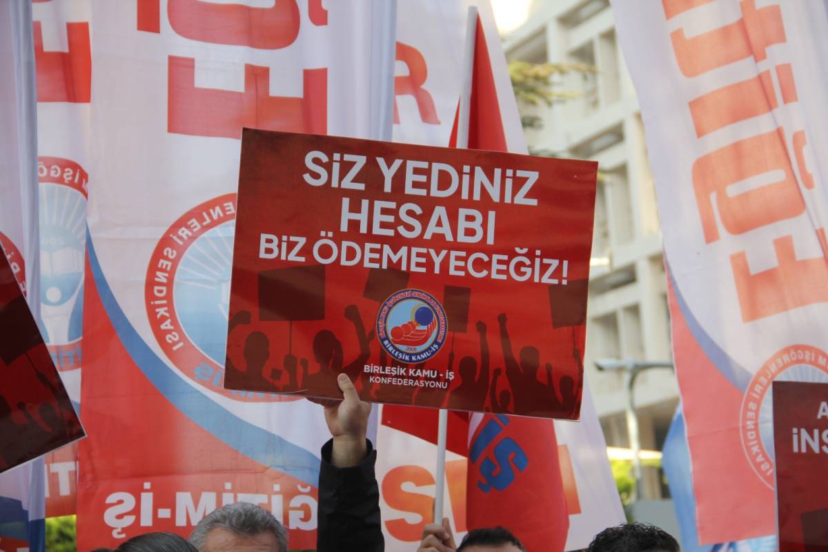 Bugün Türkiye’nin en büyük üçüncü kamu emekçileri konfederasyonu Birleşik Kamu-İş olarak işyerlerimizde değil meydanlardayız. Neden işyerlerimizde değil meydanlardayız? Adına Toplu Sözleşme dedikleri rezil tiyatroda emeğimizin hakkını gasp edenler, şimdi biz emekçilerin durumunu gözetmeden bütçe yaptıkları için tükeniyoruz" ifadelerini kullandı.