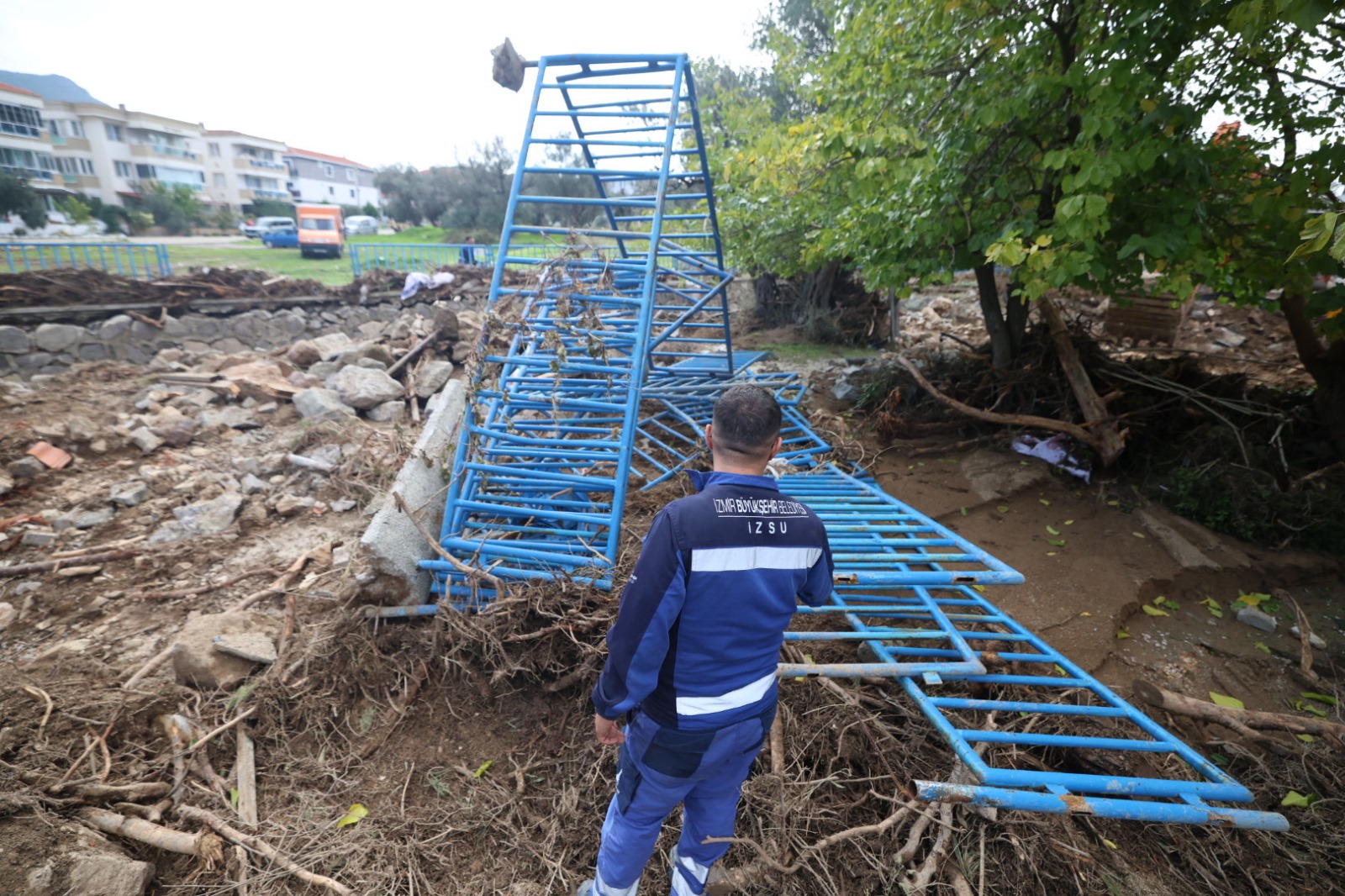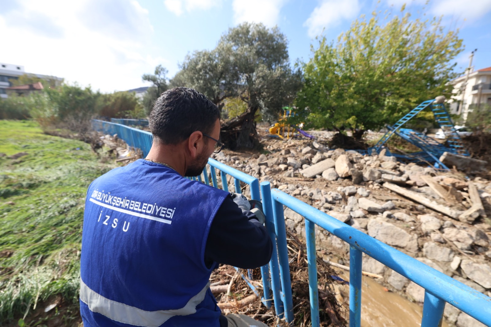İzmir Büyükşehir Belediyesi, İZSU Genel Müdürlüğü, İzmir İtfaiyesi ve Foça Belediyesi ekipleri su baskınlarının yarattığı olumsuzlukları ortadan kaldırmak, konutlar ve işyerlerindeki suları tahliye etmek ve ilçede genel temizlik çalışmaları kapsamında faaliyetlerine kesintisiz devam ediyor. Dağlık kesimlerden selle birlikte sürüklenerek dere yataklarını tıkayan ağaç dalları ve kaya parçalarının temizlenmesi için de yoğun çaba harcanıyor. Dağlardan taşınan toprakla tıkanan ızgaraların açılması için yoğun bir çalışma yürütülüyor. Ayrıca suyun şiddeti nedeniyle zarar gören dere yataklarının onarılması için İZSU ekipleri çalışmalara başladı.