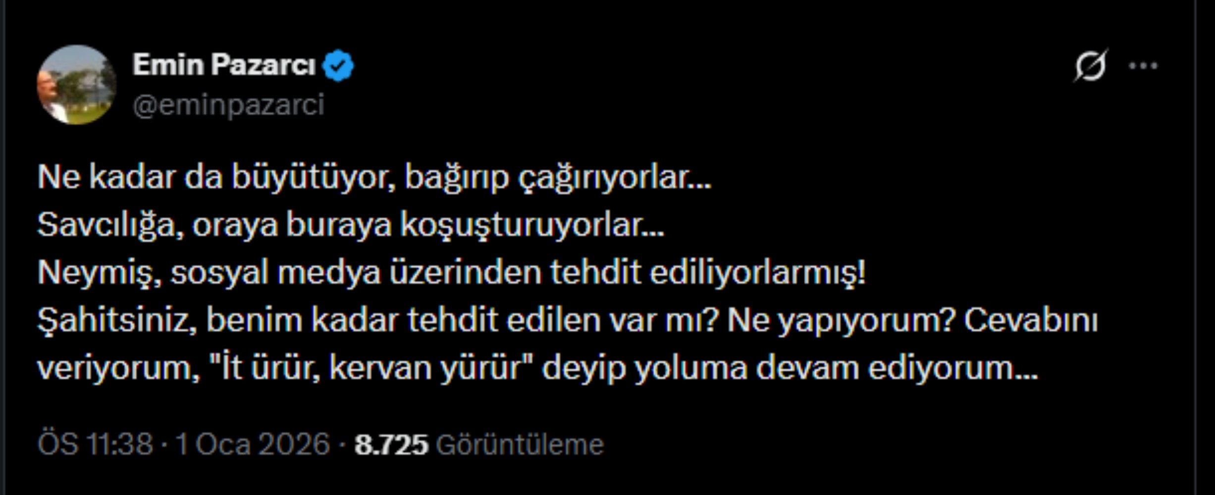 Şahitsiniz, benim kadar tehdit edilen var mı? Ne yapıyorum? Cevabını veriyorum, "İt ürür, kervan yürür" deyip yoluma devam ediyorum..."