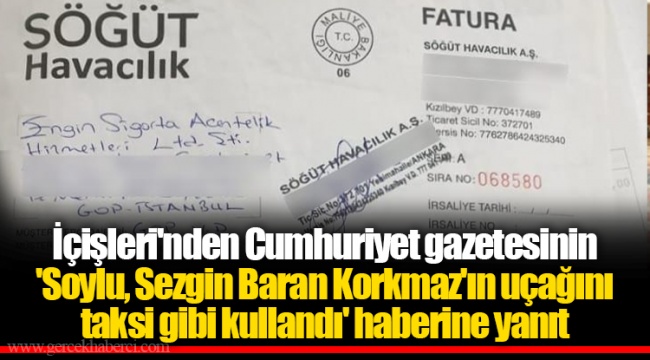 Cumhuriyet gazetesinin İçişleri Bakanı Süleyman Soylu'nun ABD’nin talebi ile Avusturya’da kara para akladığı iddiasıyla tutuklanan Sezgin Baran Korkmaz’ın uçağına 'defalarca bindiğine ilişkin' hazırladığı haberinde, Korkmaz'a ait kuyruk numarası TC-YYA olan Bombardier tipi uçakla ilgili olarak "İçişleri Bakanı Süleyman Soylu’nun her uçuşu 15 bin Avro olan bu uçağı taksi gibi kullandığı yönünde" ifadelerini kullanmıştı.