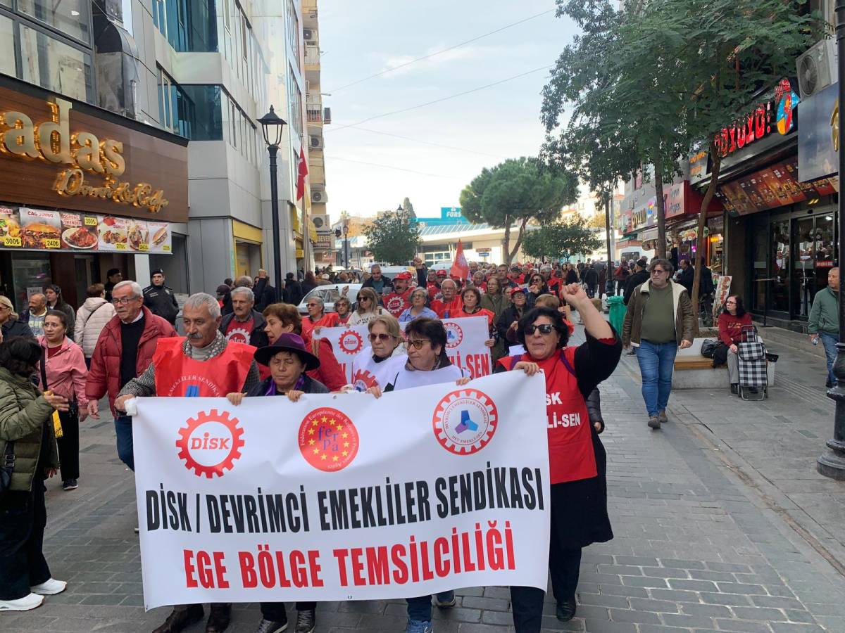 GÜLPERİ TİBİN-GERÇEK HABERCİ - Türkiye’de her geçen gün derinleşen ekonomik kriz, emekçileri de sokağa döktü. DEV EMEKLİ SEN İzmir Şubeleri tarafından, 10 Aralık İnsan Hakları Günü dolayısıyla gerçekleştirildi. Karşıyaka İZBAN durağı önünde toplanan emekliler, Karşıyaka İskele’ye kadar sloganlarla yürüdü. Basın açıklamasının okunmasından önce konuşma yapan Emekli Sen Ege Bölge Baş Temsilcisi Şehmus Kaynak, AK Parti iktidarına yönelik eleştirilerde bulundu.