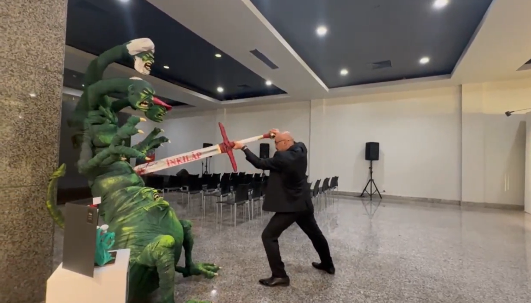 İYİ Partili Kaftar, Lütfü Kırdar Kongre Merkezi'ndeki sanat fuarında 1947 yılında Mizah dergisi karikatüristi Ramiz tarafından kaleme alınan eserin 3 boyutlu olarak yeniden yorumlanmış halini paylaştı.