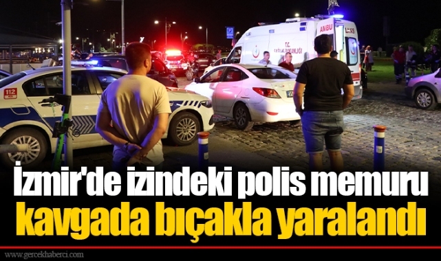 İzmir'in Konak ilçesinde çıkan kavgada izindeki polis memuru bıçakla ağır yaralandı.