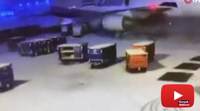 Kargo uçağı kayarak bagaj arabalarına çarptı