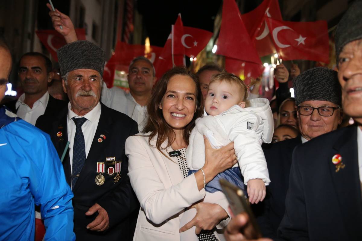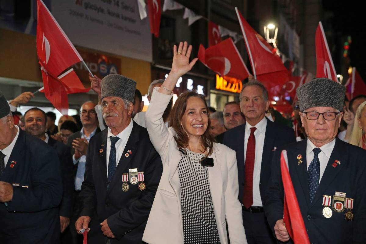 Türkiye Cumhuriyeti’nin kuruluşunun 102’nci yıl dönümü, Karşıyaka’da muhteşem bir coşkuyla kutlandı. Araç konvoyu ile başlayan etkinlikler, 5 bin kişilik kortejle devam etti; dans ve müzik gösterileriyle unutulmaz bir şölene dönüştü. Bin 500 kişinin el ele vererek oluşturduğu Ay-Yıldız ve Atatürk silüeti ise izleyenlere gurur dolu anlar yaşattı. Coşkulu kalabalığa seslenen Belediye Başkanı Yıldız Ünsal “Bu bayrak, bu vatan, bu gelecek hepimizin! Büyük mirasımızı daha da ileriye taşımaya, çocuklarımıza daha aydınlık bir Türkiye bırakmaya söz veriyoruz!” dedi.