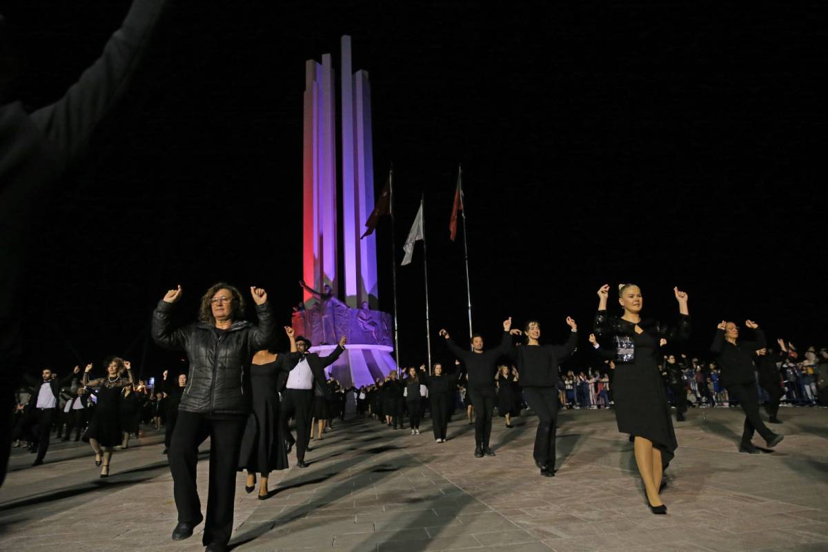 Anıt önünde gerçekleşen törende ise Karşıyaka Belediyesi Halk Dansları Topluluğu tarafından vals ve zeybek gösterileri sergilendi. Ardından yaklaşık bin 500 kişi el ele vererek dev bir Ay-Yıldız’ın içinde Atatürk silüeti oluşturdu. Karşıyaka’nın Cumhuriyet’e bağlılığını ve Atatürk sevgisini canlandıran bu görsel şölen, duygu dolu anlara sahne oldu. Ardından Hazım Körmükçü ve DJ Akşit’in performansıyla bayram coşkusu zirveye taşındı. 7’den 77’ye binlerce Karşıyakalı’nın katıldığı gecede, Cumhuriyet ruhu bir kez daha yüreklerin en derinine kazındı.