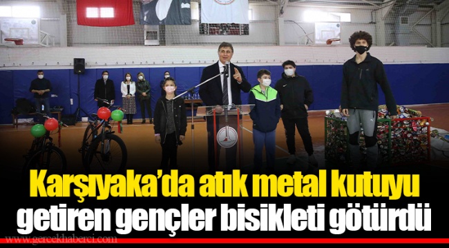 Karşıyaka’da atık metal kutuyu getiren gençler bisikleti götürdü