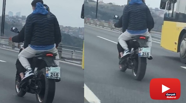 Motosikletinin plakasını cerrahi maskeyle gizleyen sürücünün arkasındaki kişinin de kasksız yolculuk yapması dikkat çekti. O ilginç anlar başka bir sürücünün cep telefonu kamerasına yansıdı. Kilometrelerce yolu plakasını cerrahi maskeyle gizleyerek ilerleyen motosikletteki 2 kişi Fatih Sultan Mehmet köprüsü üzerinden Avrupa yakasına geçtikten kısa bir süre sonra gözden kayboldu.