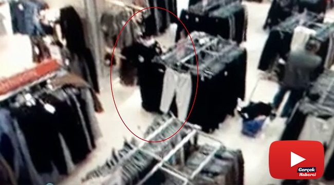 Öte yandan mağazada yaşanan hırsızlık olayı anbean güvenlik kameralarına yansıdı. Güvenlik görevlisi A.K., mağazaya alışveriş yapmaya gelen A.A. adlı yabancı uyruklu müşterinin sepetteki çantasında, kıyafetleri perdeleyerek çaldığı görülüyor. A.K. adlı zanlı, ardından askıdan aldığı bir kıyafet ile olay yerinden uzaklaşıyor.