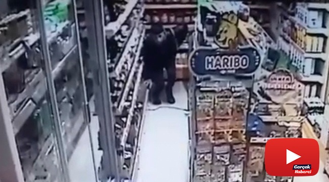 Markete giren hırsız, iş yeri sahibi tarafından sopayla kovalandı