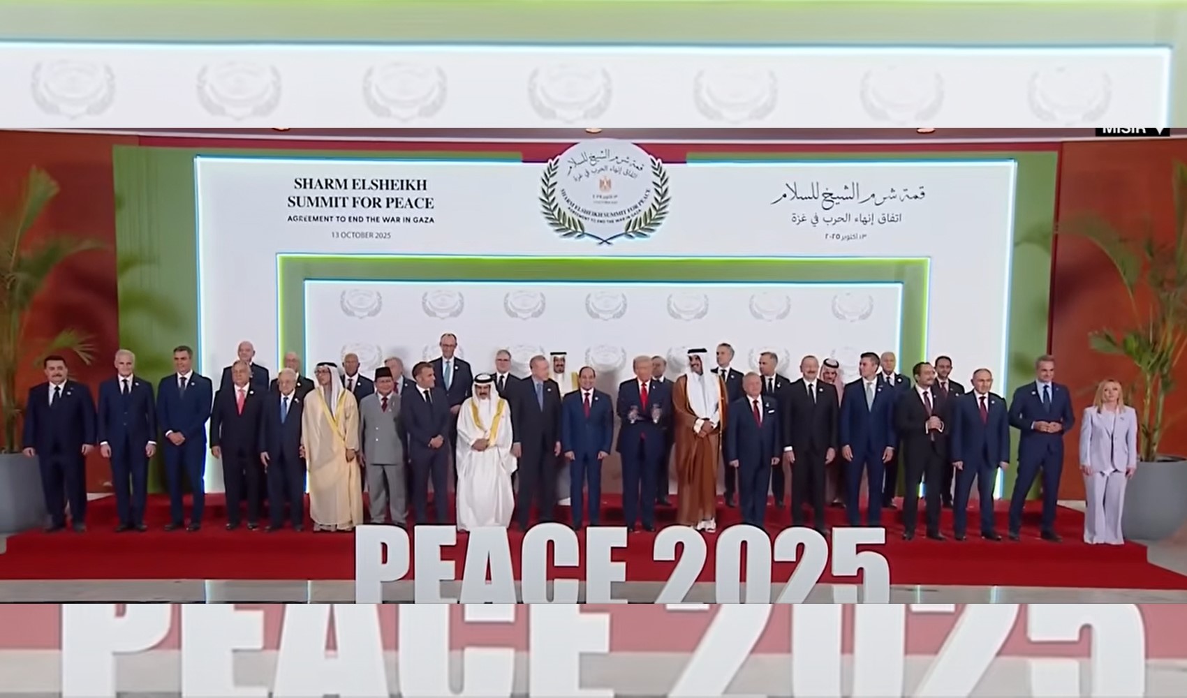 Toplu fotoğraf çekiminin ardından masaya oturan liderler Gazze için 'iyi niyet belgesine' imza attılar.