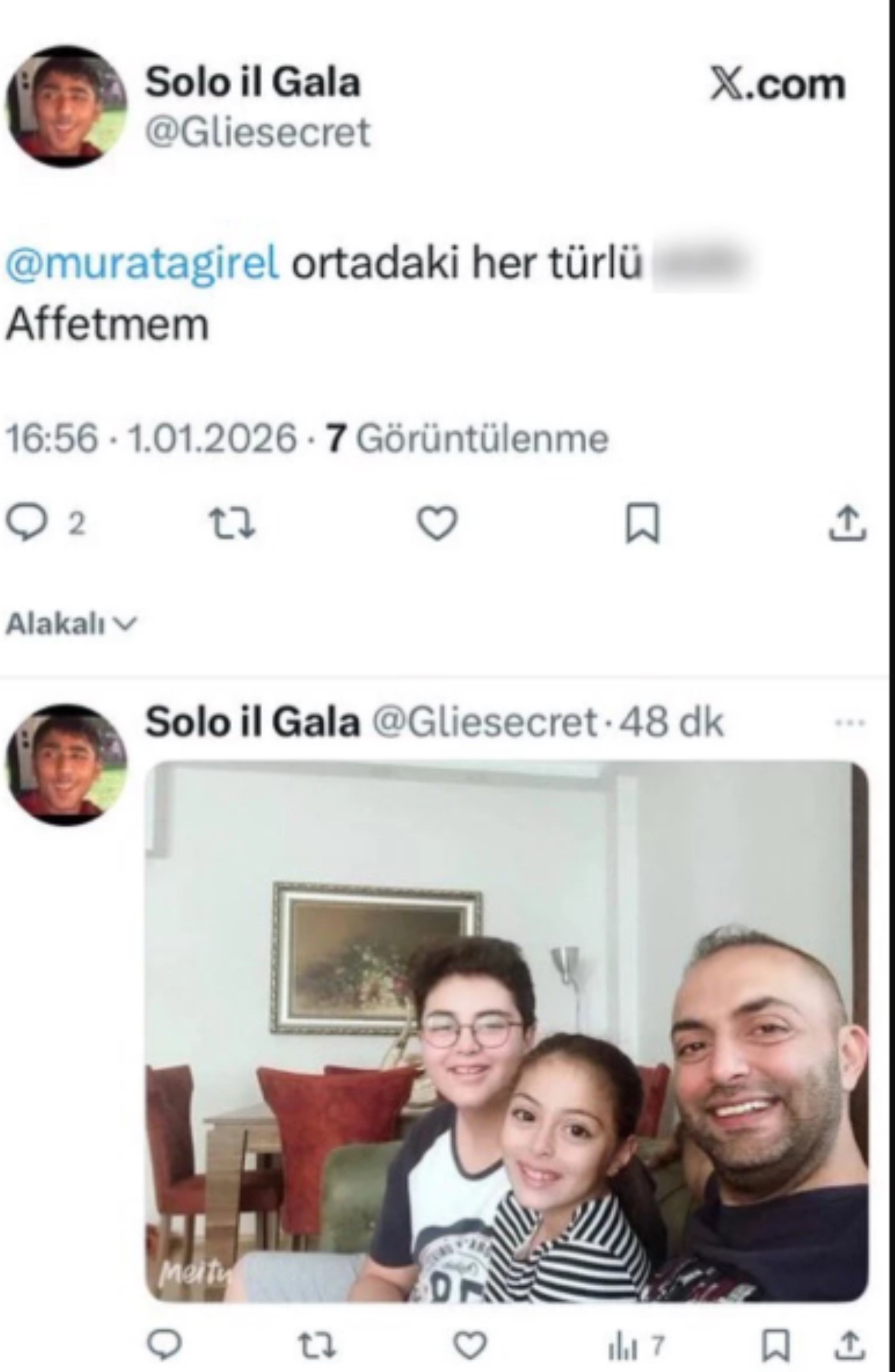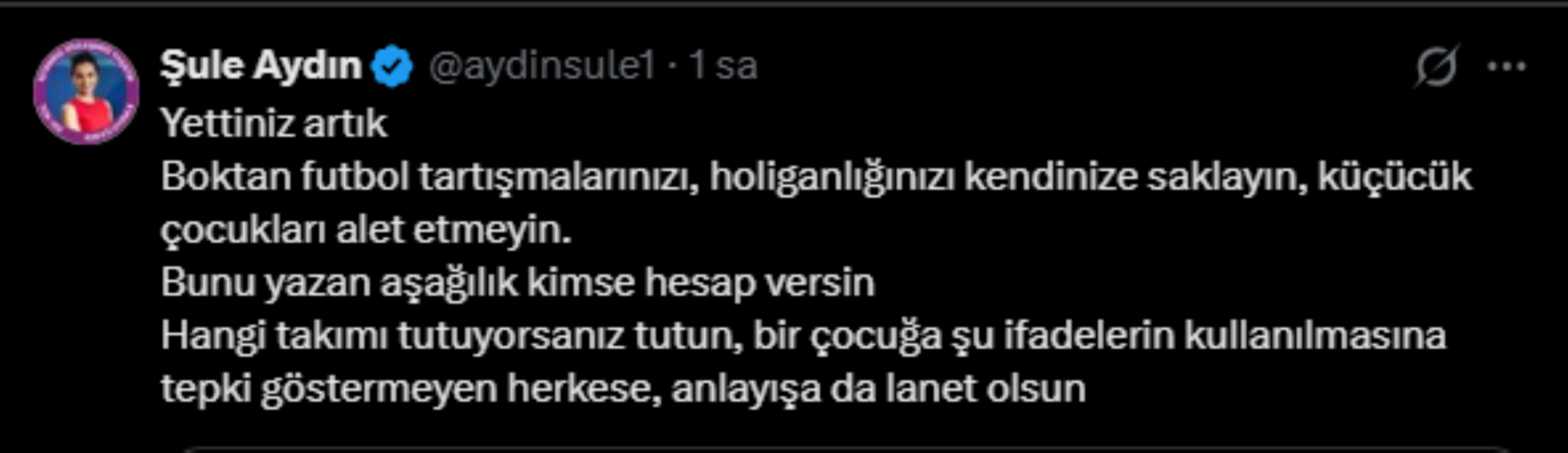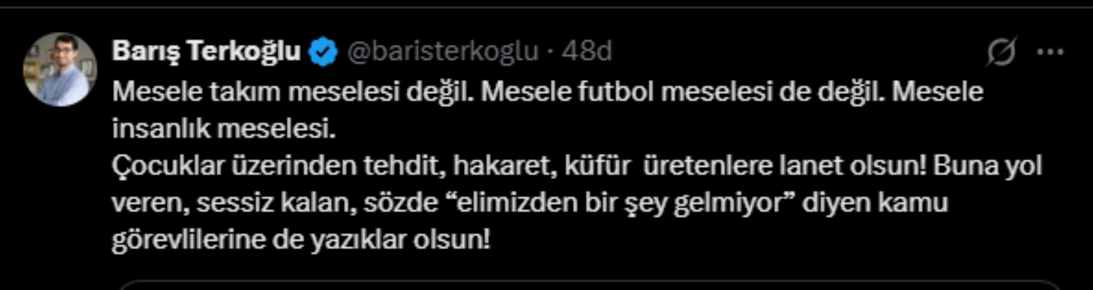 Ancak iki yıldır bana diş geçiremeyen; buna rağmen çocuklarıma tecavüz edeceğini söyleyecek kadar alçalan, kendisini “Galatasaraylı” olarak tanımlayan ve anonim hesaplar arkasına saklanan bu şerefsizlerin bulunmasını talep ediyorum.