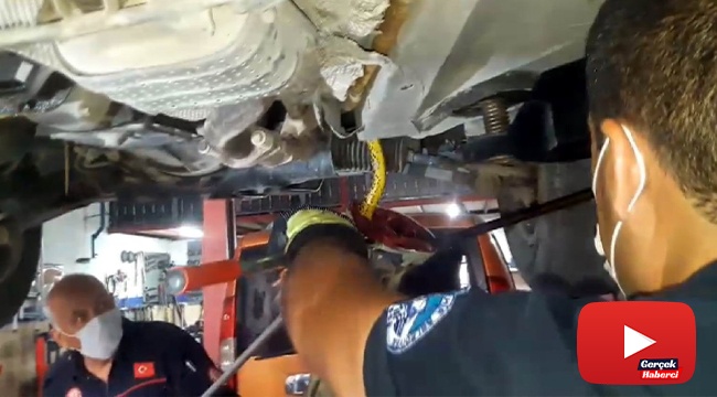 Otomobile giren 1 metrelik yılan itfaiye ekipleri tarafından çıkarıldı