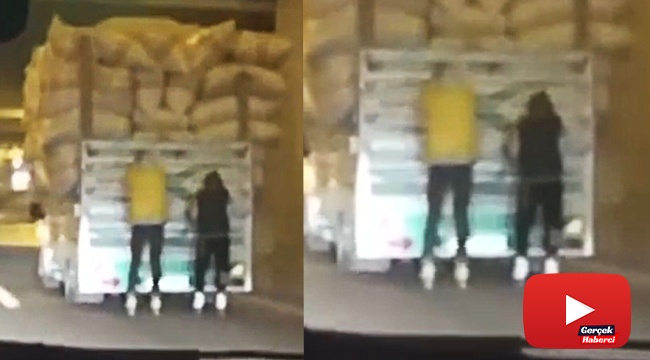 Batman'da saman yüklü bir kamyonetin arkasından tutunarak patenle yolculuk yapan gençlerin tehlikeli yolcuğu faciaya yol açıyordu. O anlar cep telefonuyla kaydedildi.
