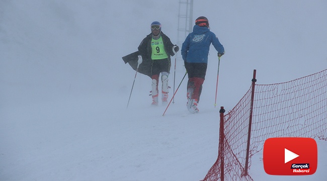 Saatte 45 kilometre hıza kadar ulaşan rüzgar sonrası görüş mesafesi düşerken pistlerden inmeye çalışan kayakseverler ayakta durmakta zorluk çekti.
