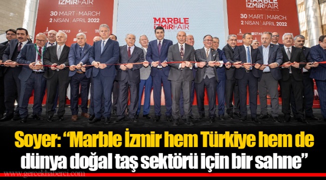 Fuarın açılışında konuşan İzmir Büyükşehir Belediye Başkanı Tunç Soyer, fuarı bayram gibi kutladıklarını dile getirerek şöyle konuştu: “Ülke olarak doğal taş üretim ve ihracatında dünyanın en büyük hacmine sahibiz. 2021 yılında doğal taş sektörü 2 milyar doların üzerinde bir ihracat rakamına ulaştı. 2022 yılı Ocak ve Şubat aylarında ise, geçtiğimiz yılın ilk iki ayına göre ihracat rakamlarında yüzde on artış yakaladık. Bu yıl Marble İzmir’e bu ivmeyi pekiştirmek ve sektöre destek olmak için çok yoğun bir şekilde hazırlandık. Türkiye sadece elinde bulunan rezervler nedeniyle değil, aynı zamanda yerli üretim makineleri, özenli işçilik ve hüneriyle de dünyanın öncü ülkelerinden biri. İhracat payı her geçen yıl artan katma değeri yüksek ürünlerimizle doğal taş sektöründeki konumumuzu daha da güçlendiriyoruz. Marble İzmir hem Türkiye hem de dünya doğal taş sektörü için bir sahne. Bu sahnede dünyanın trendlerini belirleyen ürünlerle, fikirlerle buluşmak mümkün. Her yıl daha fazla rağbet gören ve büyüyen doğal taş sektörünün geleceğini belirleyecek, bu sahneye ışık olacak ise siz değerli katılımcılarsınız. Ülke olarak katma değeri yüksek üretime verilecek teşvikler, yapılacak yatırımlarla 2 milyar dolarlık ihracat rakamının çok üzerine çıkabilecek güçlü bir sektöre ve potansiyele sahibiz. İzmir Büyükşehir Belediyesi ve İZFAŞ; markalarımızın, firmalarımızın kabiliyetlerini ve ürünlerini, bu ustalığa yaraşır bir mekanda Fuar İzmir’de dünyayla buluşturmaya devam edecek” dedi.