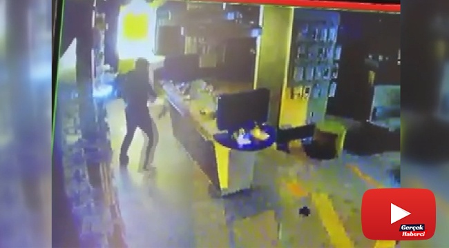 İddiaya göre hırsız işyerinin kırılmaz denilen camını gece saat 3.15 sıralarında kaldırımdan söktüğü parke taşıyla kırıp içeriye girdi. İçerideki teşhir ürünü olan cep telefonu ve tabletleri gözüne kestiren hırsız, stantlarda bulunan telefonları şarj kablolarıyla birlikte kopararak yanına aldı. Kısa sürede gerçekleşen hırsızlık olayında telefon bayisinden 4-5 telefon çalan hırsız 60 bin liralık maddi zarara neden oldu. Hırsızın camı kırması ve içeride telefonları koparma anları ise işyerinin güvenlik kameralarına anbean yansıdı.