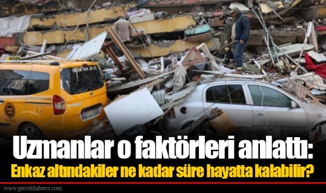 BBC’den Çağıl Kasapoğlu’nun haberine göre, uzmanlar bunun çeşitli faktörlere bağlı olduğunu söylüyor. Çökme anındaki konum, hava ve suya erişim, iklim, hava koşulları ve enkaz altındaki kişinin fiziksel ve psikolojik durumu gibi unsurlar, ne kadar süre hayatta kalabileceklerini etkiliyor.